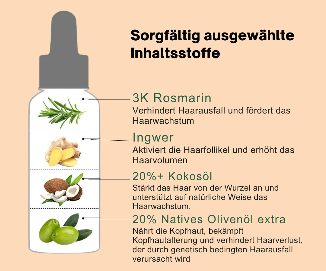 Das Glowear-Haaröl vereint die Kraft von Rosmarin, Ingwer, Kokos- und Olivenöl, um Haarwachstum zu fördern, Haarausfall vorzubeugen und die Kopfhaut intensiv zu nähren. Die leichte, nicht fettende Formel stärkt das Haar, spendet Feuchtigkeit und verleiht natürlichen Glanz – ganz ohne Silikone oder Parabene. Für gesundes, kräftiges und geschmeidiges Haar – jeden Tag!